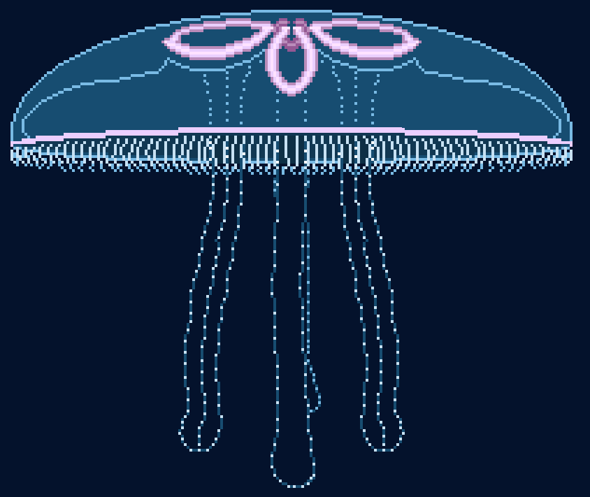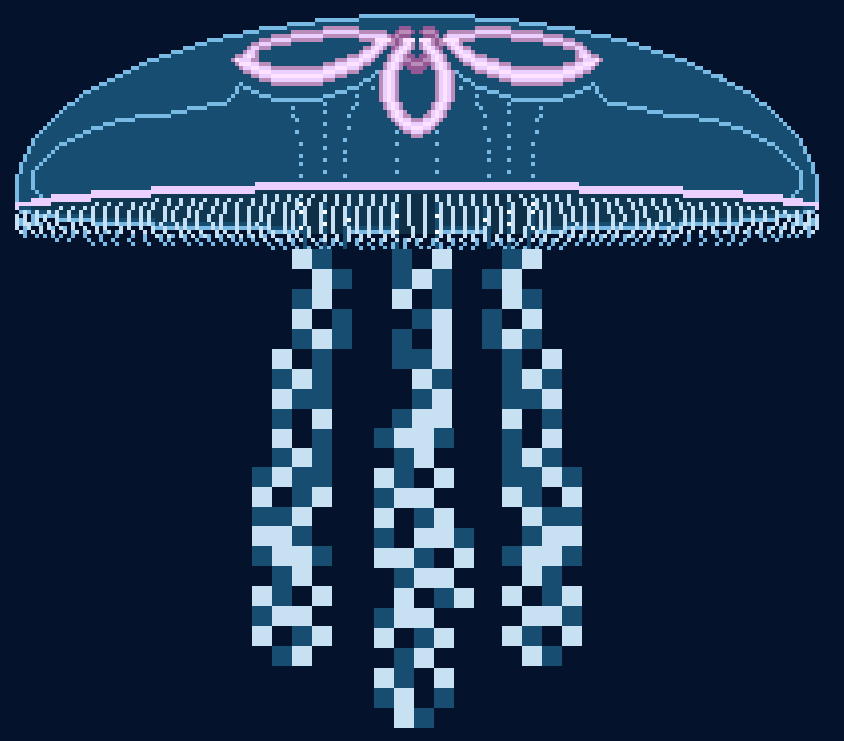This jellyfish is a little too advanced for where our character needs to start. I’m going to move backward to a simpler form, but we have an aesthetic.